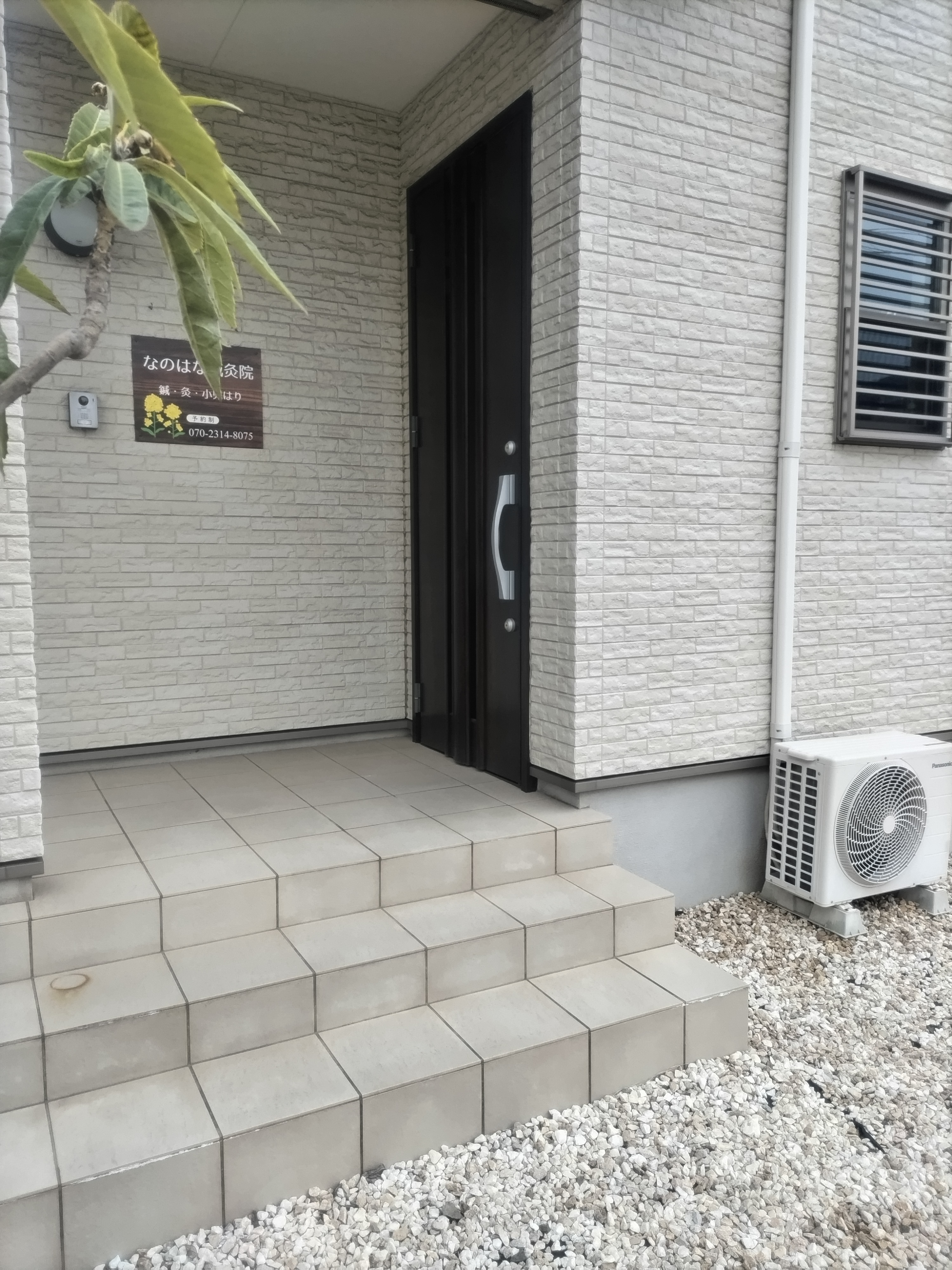 *入口は西側です。治療室は玄関を入り、階段をのぼった2階です。